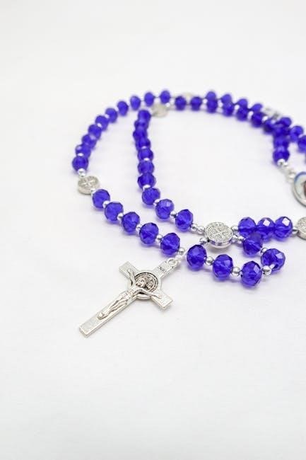 A Latin Rosary PDF reveals the prayer’s structure: decades of Hail Marys, preceded by the Lord’s Prayer and followed by the Glory Be, forming a sacred rhythm.